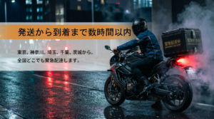 image_423f49bc6 2026.03.01 Twitter Facebook B!はてブ Pocket LINE 関連記事 バイク便の使い方は?バイク便ネットワークスご利用の流れと当社の取り組みについて 千葉・館山で鍵を紛失!バイク便でピンチを救った驚きの解決法とは? 【千葉・市原】台風の日のバイク便を通して、同僚との絆を深めた話 お中元のマナーと贈り方ガイド|バイク便で確実にお届け 【千葉】バイク便で届ける敬老の日のプレゼント!大切な人にどこよりも早くお届けします。 【横浜バイク便】東京までの料金相場や配送の流れを徹底解説!